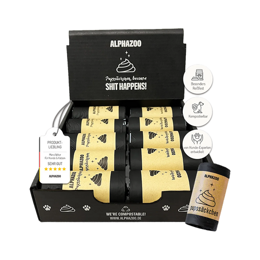 Alphazoo bajspåsar är tillverkade av växtbaserade material som bryts ner naturligt och snabbt i naturen. De är ett bra alternativ till traditionella plastpåsar och minskar plastavfallet, vilket gör dem till ett hållbart val för alla hundägare.